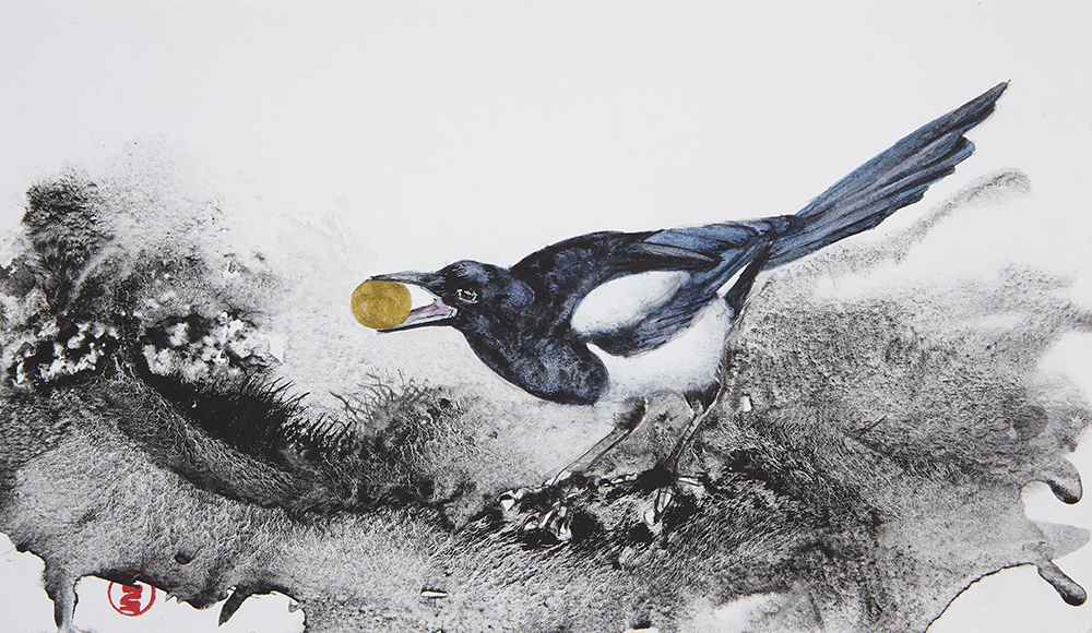 Soazig Lemur observe et dessine les oiseaux depuis des années. Face à la disparition progressive des espèces et de leurs habitats, peindre est devenu pour elle une nécessité, presque une urgence, comme pour en préserver la mémoire. Influencée par l’esthétique asiatique, notamment japonaise, elle privilégie la simplicité. À travers l’encre, l’eau et le jeu du noir et du blanc, elle capte l’essentiel : le mouvement et la personnalité de chaque oiseau.